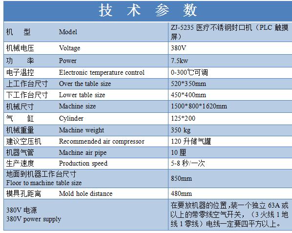 設(shè)備型號:ZJ-5235醫(yī)療吸塑封口機(jī)(PLC觸摸屏)