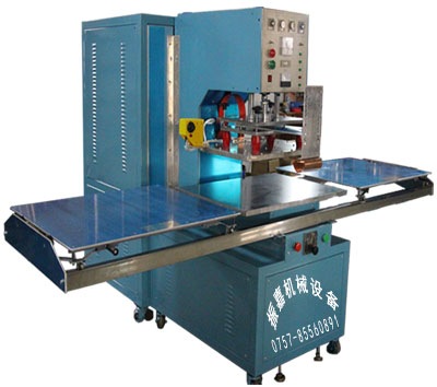 本機主要采用高頻機、高周波工作原理,利用高壓變壓器整流自激高頻電子管振蕩瞬間產(chǎn)生高頻電磁波電流電場,利用被加工的PVC、TPU、EVA、PETG等材料在高頻電磁波電場內(nèi)其塑膠、塑料材料的內(nèi)部分子產(chǎn)生極性化導(dǎo)熱,加上一定的壓力使所需要熱合焊接的塑料、塑膠產(chǎn)品達到熔接封口作用。